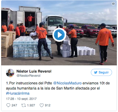 (1) « Tras paso de Huracàn Irma | Venezuela envió 10 toneladas de insumos como ayuda humanitaria a la isla de San Martín », Venezolana de Televisión, 10/09/2017